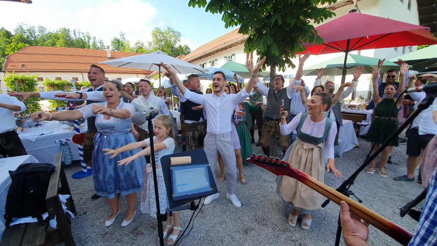 Als bayerische Hochzeitsband 2023 beim Käfer am Tegernsee